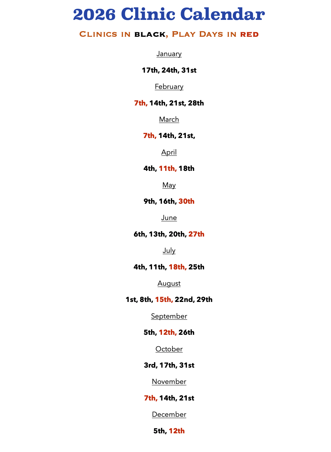2026 Clinic Calendar